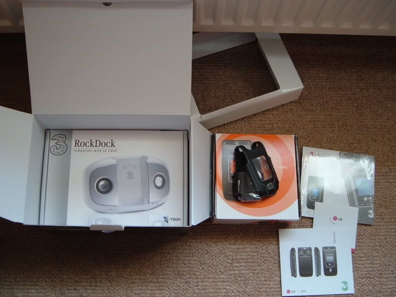 Here we have an as new mint LG U880 on three, its fully boxed with manuals, and all standard bits unnopened, not a mark on the phone itself either. Its coming also with a 32 mb t-flash, an official unused bodyglove case and also a "rockdock" speaker unit.